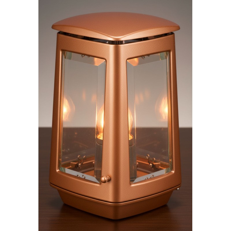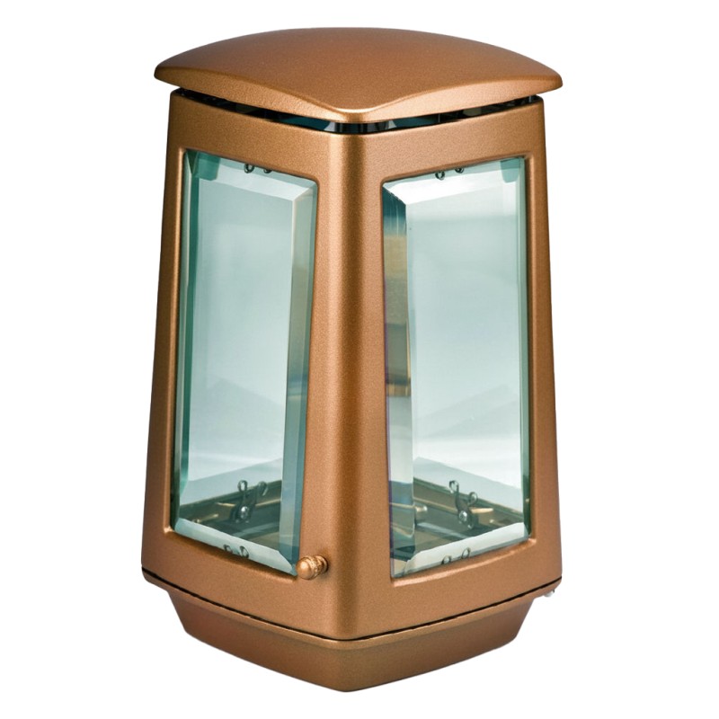 Lanterna em alumÃnio, com estrutura na cor bronze. Produzida em material leve e resistente, garante durabilidade mesmo em exposição prolongada ao exterior. Com 26 cm de altura e 14 cm de largura, apresenta um design elegante e moderno, oferecendo espaço adequado para iluminação simbólica. Uma escolha fiável e estética para homenagens cuidadas.