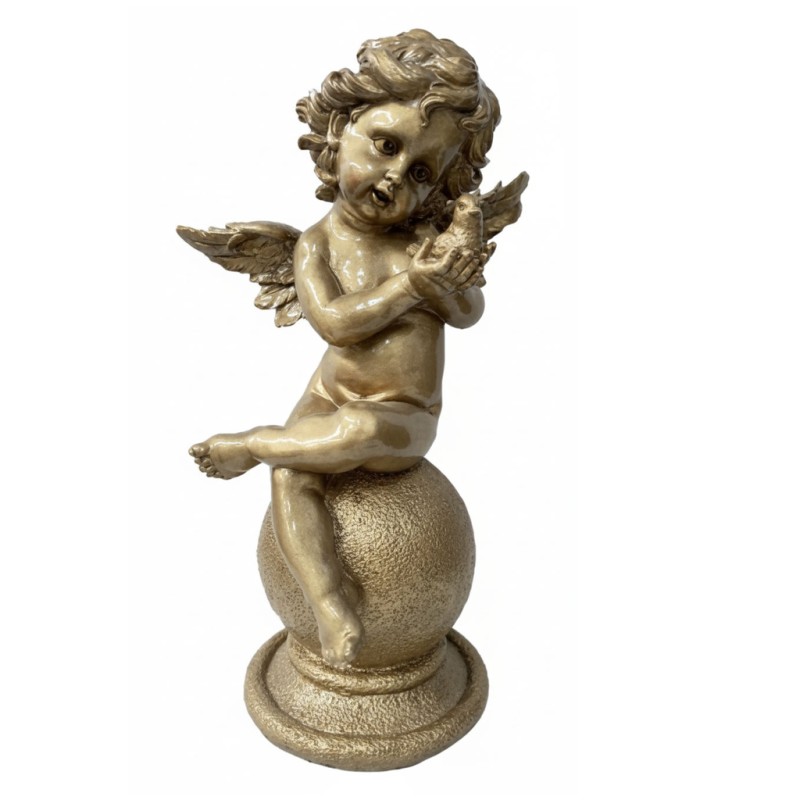 Estátua em ramazina a representar um anjo com um pássaro, acabamento em tom de bronze. Indicada para instalação em terreno, combina resistência com um visual delicado e expressivo. Com medidas de 46x18 cm, apresenta uma presença marcante sem perder a elegância, sendo ideal para valorizar qualquer espaço memorial com simbolismo e harmonia.
