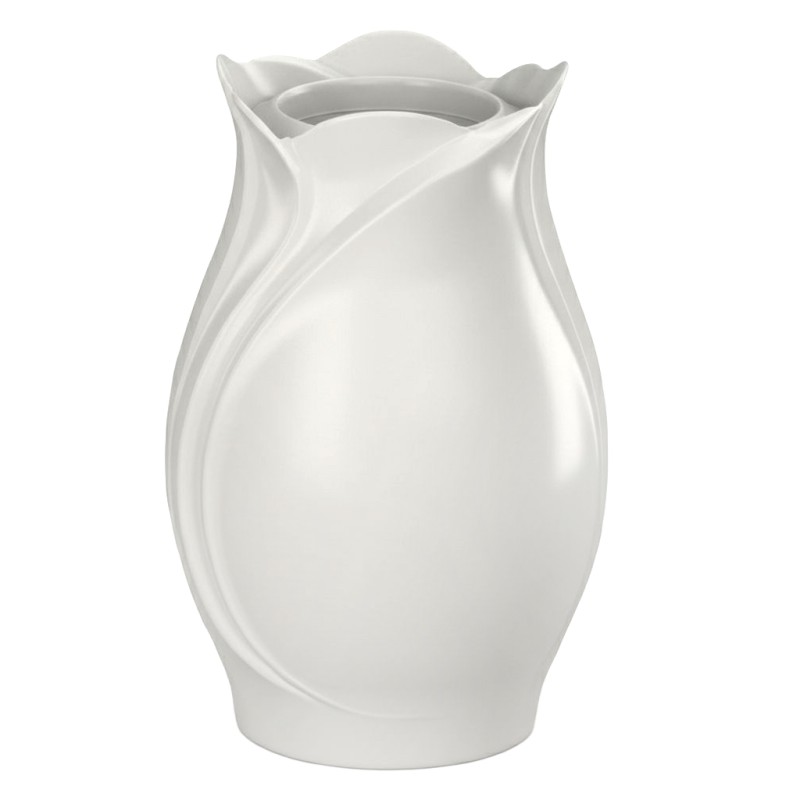 Elegante vaso em alumÃnio, tonalidade branca, projetado para instalação em terreno. Com 29,5 cm de altura, este item oferece uma opção sofisticada e durável para memoriais, transmitindo serenidade e respeito.