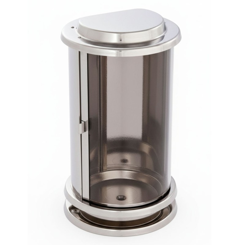 Lanterna em inox, adequada para utilização em terreno ou parede. Com 22,5 cm de altura, oferece um design moderno e resistente, ideal para espaços memoriais que exigem durabilidade. A estrutura em inox garante estabilidade e manutenção simples, mantendo uma apresentação elegante ao longo do tempo.
