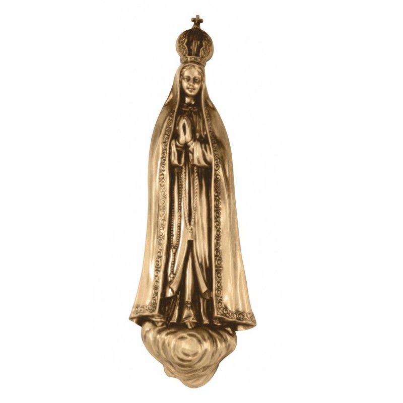Fátima. Aplique em bronze para instalação em parede. Fabricado em bronze de elevada qualidade, apresenta um detalhe artístico clássico, ideal para valorizar qualquer espaço memorial. Disponível em alturas de 21 cm e 42 cm, adapta-se a diferentes composições, oferecendo sempre uma presença serena e simbólica. Uma peça duradoura, resistente e com forte impacto visual.