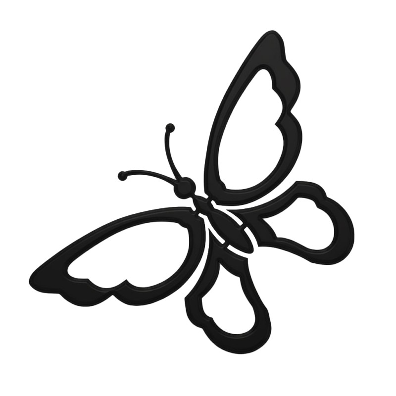 Borboleta em inox recortado, com acabamento na cor preto, para aplicação em parede. O recorte preciso confere um design leve e simbólico, representando transformação e serenidade. Fabricada em inox de elevada resistência, é adequada para utilização em exterior. DisponÃvel nas medidas de 10 cm ou 15 cm, ideal para aplicações discretas e elegantes.