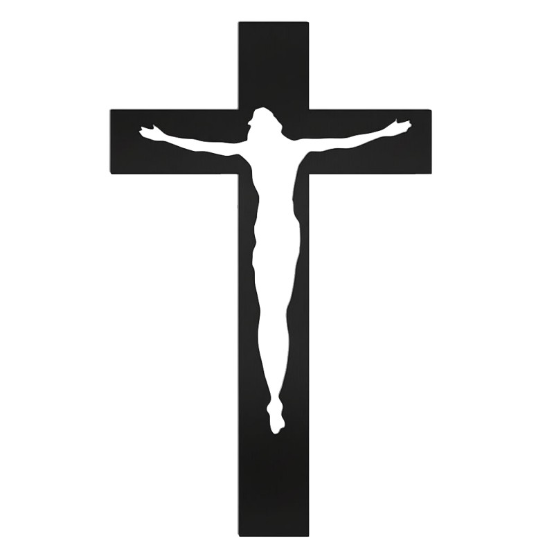 Cruz com Cristo em inox recortado, com acabamento na cor preto, para aplicação em parede. Apresenta um trabalho de recorte preciso que valoriza o detalhe da figura, mantendo um visual sóbrio e elegante. Fabricada em inox de elevada resistência, é adequada para utilização em exterior. DisponÃvel nas medidas de 40 cm ou 60 cm, permitindo escolher a dimensão mais adequada ao espaço pretendido.