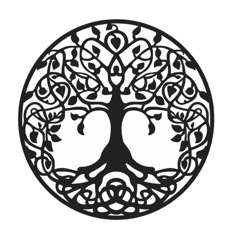 Árvore da Vida em inox recortado, com acabamento na cor preto, para aplicação em parede. O recorte preciso realça o símbolo de vida, continuidade e ligação, conferindo um aspeto moderno e elegante. Fabricada em inox de elevada resistência, é adequada para utilização em exterior. Com diâmetro de 40 cm, é uma peça de presença marcante e harmoniosa para valorização de espaços memoriais.