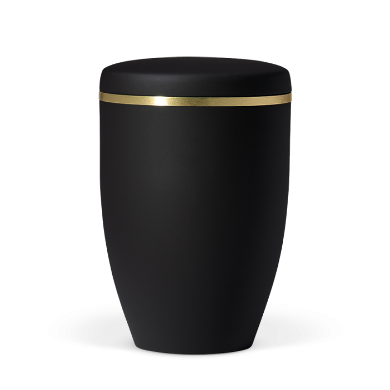 Urna preta simples e digna, com faixa dourada escovada. O preto é frequentemente considerado a cor da força e do carácter. A fita dourado pode ser interpretado como um sÃmbolo de amor, devoção e eternidade. Esta urna é clássica e contemporânea ao mesmo tempo, um belo recipiente para guardar as cinzas de um ente querido com respeito. Apreciamos a simplicidade desta urna, que se adapta a uma grande variedade de estilos pessoais e arranjos florais.