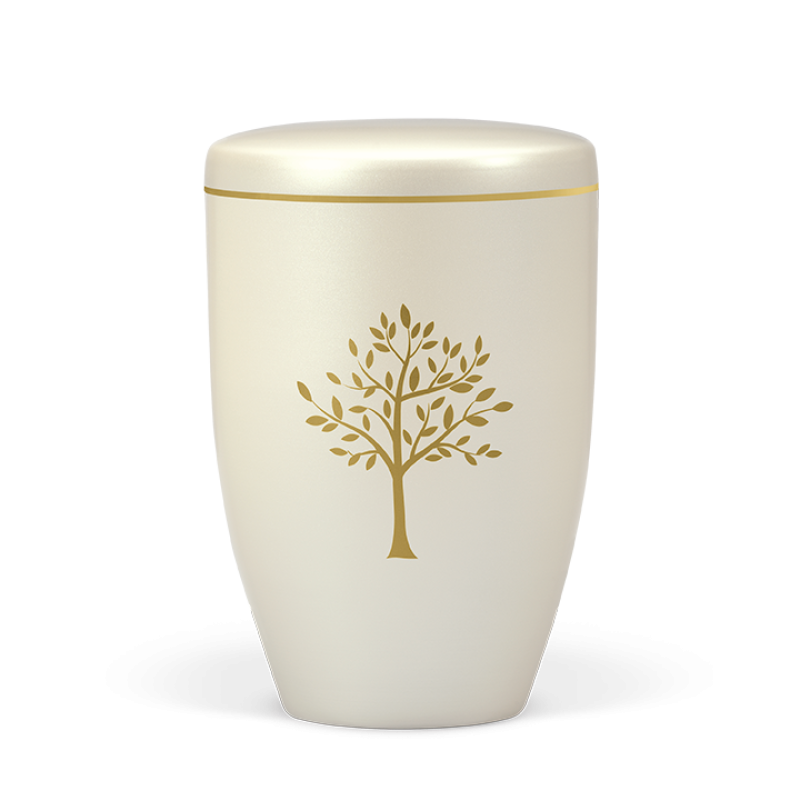 Esta elegante urna funerária cor creme possui um subtil brilho nacarado e apresenta uma bela árvore da vida dourada. A árvore da vida é amplamente considerada um sÃmbolo de imortalidade e renovação. Ela lembra-nos que tudo está interligado, muito para além do que os nossos olhos conseguem ver. Esta bela urna é clássica e contemporânea ao mesmo tempo, e combina com uma grande variedade de estilos pessoais e arranjos florais.